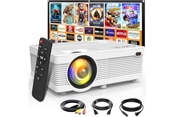 #1:Mini Projector, PVO Portable Projector for Cartoon, Kids Gift, Outdoor Movie Projector, LED Pico Video Projector for Home Theater Movie Projector with HDMI USB Interfaces and Remote Control